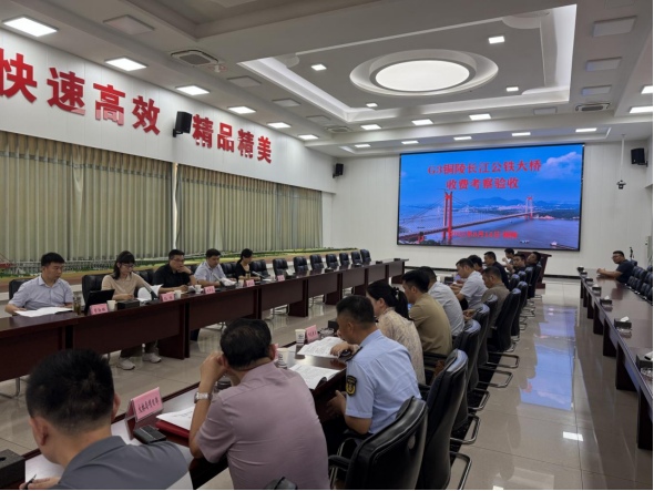 考察組一行首先實(shí)地查看了收費(fèi)站現(xiàn)場情況,對項(xiàng)目收費(fèi)系統(tǒng)的建設(shè)成果給予高度評價。在隨后召開的驗(yàn)收會議上,與會人員觀看了項(xiàng)目建設(shè)紀(jì)實(shí)視頻,聽取了市交通運(yùn)輸局關(guān)于收費(fèi)申報(bào)驗(yàn)收工作的專題匯報(bào)。經(jīng)充分討論,考察組一致認(rèn)為G3銅陵長江公鐵大橋項(xiàng)目已具備設(shè)站收費(fèi)條件,同意辦理收費(fèi)申報(bào)手續(xù)。